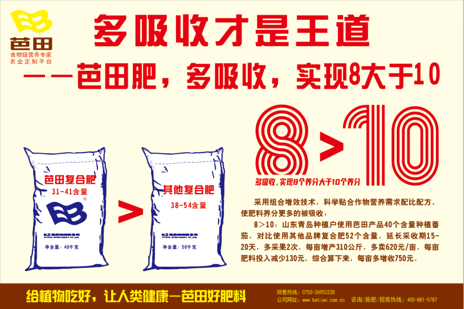 “作為國內(nèi)知名肥料企業(yè)代表,芭田股份始終踐行食物鏈營養(yǎng)專家的使命,倡導(dǎo)“缺啥,補(bǔ)啥,吃好不浪費,吃好人健康”的施肥理念。堅持從食物鏈源頭做起,通過產(chǎn)品與技術(shù)創(chuàng)新,發(fā)展?fàn)I養(yǎng)均衡全面、安全高效的肥料,確保糧食、食品的營養(yǎng)與安全。為此,芭田成立了國內(nèi)第一家鈣鎂磷肥研究中心、全國農(nóng)化服務(wù)中心。2019年,聘請了著名土壤科學(xué)家、中國科學(xué)院院士趙其國為首席技術(shù)顧問專家。2020年,國家糧食產(chǎn)業(yè)(功能稻米)技術(shù)創(chuàng)新中心土壤養(yǎng)分創(chuàng)新深圳中心正式落戶芭田,為芭田進(jìn)一步研發(fā)、生產(chǎn)功能型產(chǎn)品提供了強(qiáng)有力的技術(shù)支撐。”芭田股份品牌部經(jīng)理周嘉蕓表示。